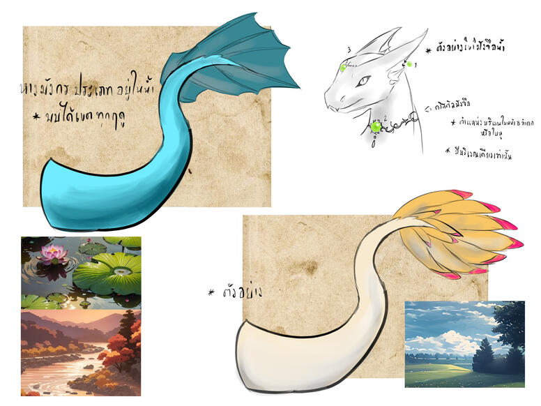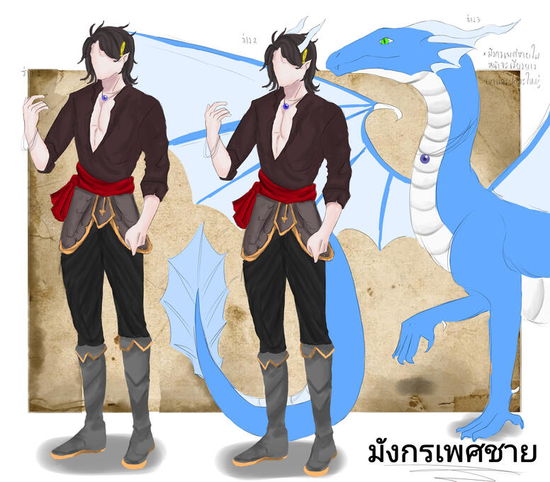 (ไม่ต้องบังคับเขียนร่างไหนก็ได้) ** ส่วนอลังการบางทีบางคิดอลังการไม่ออก** [ในรูปตัวอย่างมังกรฟังอ่าน]ร่างที่1 - เป็นเนื้อหาที่แปลงเป็นมนุษย์หูแหลม] ในร่างมังกร
