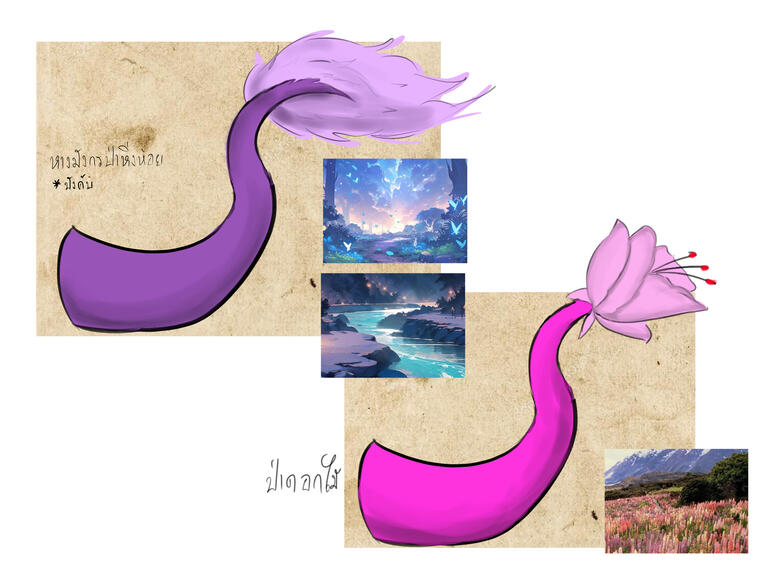 -เรียวหางส่วนปลายหางจะเป็นดอกไม้ไว้ความทรงจำในตัวและล่อแมลง
